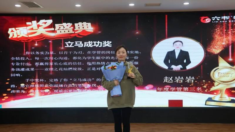 嵩县校区凭借全员一心的协作、亮眼夺目的业绩,成功斩获“年度优秀团队奖”!“目标为号,荣誉为旗”,他们心往一处想、劲往一处使,每一次并肩作战都凝聚着破阵的合力,每一个奋斗身影都闪耀着团队的光芒。这座“万马奔腾”的奖杯,是对他们同心协力的最佳褒奖,更预示着2026年他们将再创辉煌!